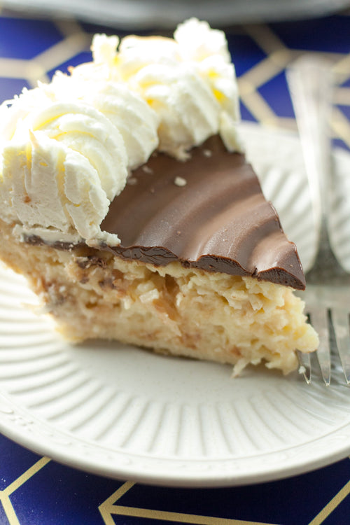 Peanut butter mousse, ganache, oreo crust, Butterfinger candy whipped cream.